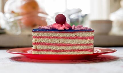 Bubble gum cake slice