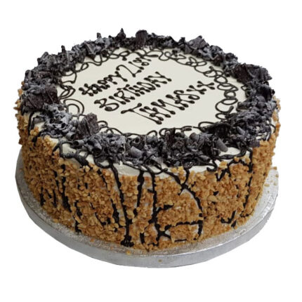 This round chocoltae drizzle cake is one of our popular designs with four layers of vanilla sponge & chocolate fresh cream, lavishly decorated with chocolate toppings and chocolate drizzle on the sides.